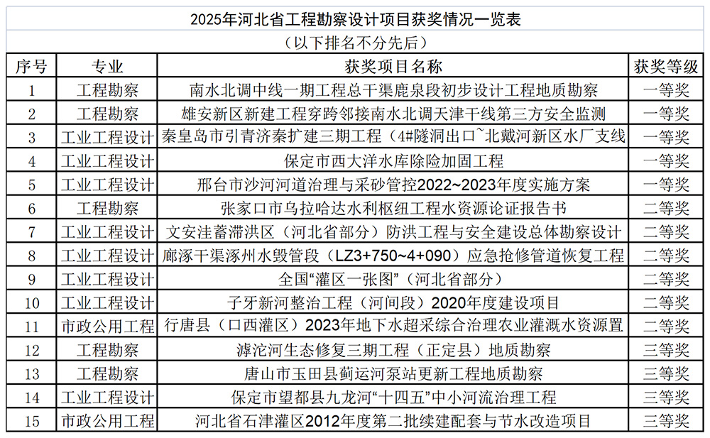 集團(tuán)水勘院15個(gè)項(xiàng)目獲2025年河北省工程勘察設(shè)計(jì)項(xiàng)目成果獎(jiǎng)
