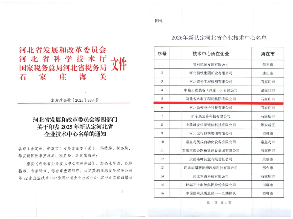 近日,河北省發(fā)展和改革委員會、河北省科學(xué)技術(shù)廳等四部門聯(lián)合發(fā)布2025年新認定河北省企業(yè)技術(shù)中心名單,集團水工局憑借卓越的技術(shù)創(chuàng)新能力與突出的業(yè)績表現(xiàn),成功認定河北省企業(yè)技術(shù)中心。